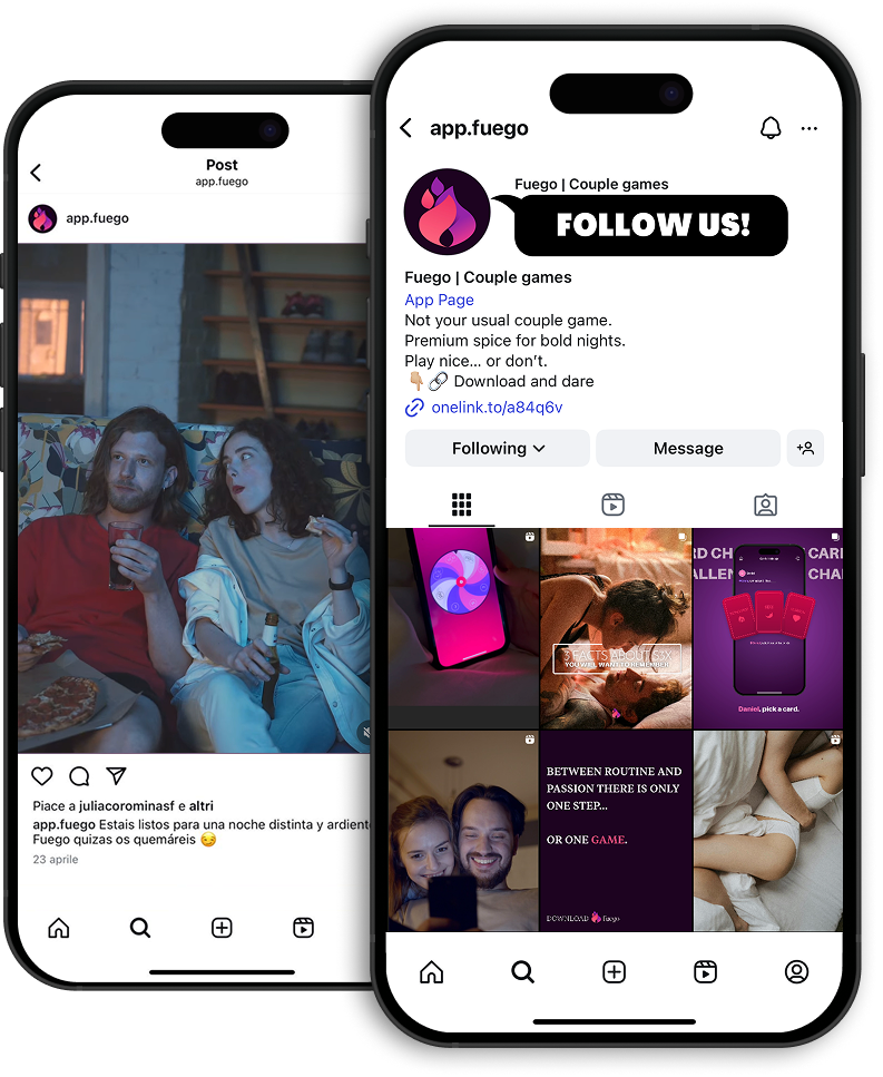 Discover Fuego: the app that turns every moment into a seductive game. Complete personalized romantic challenges, plan unforgettable date experiences, and strengthen your bond with unlimited fun. Download now and spark the excitement today!